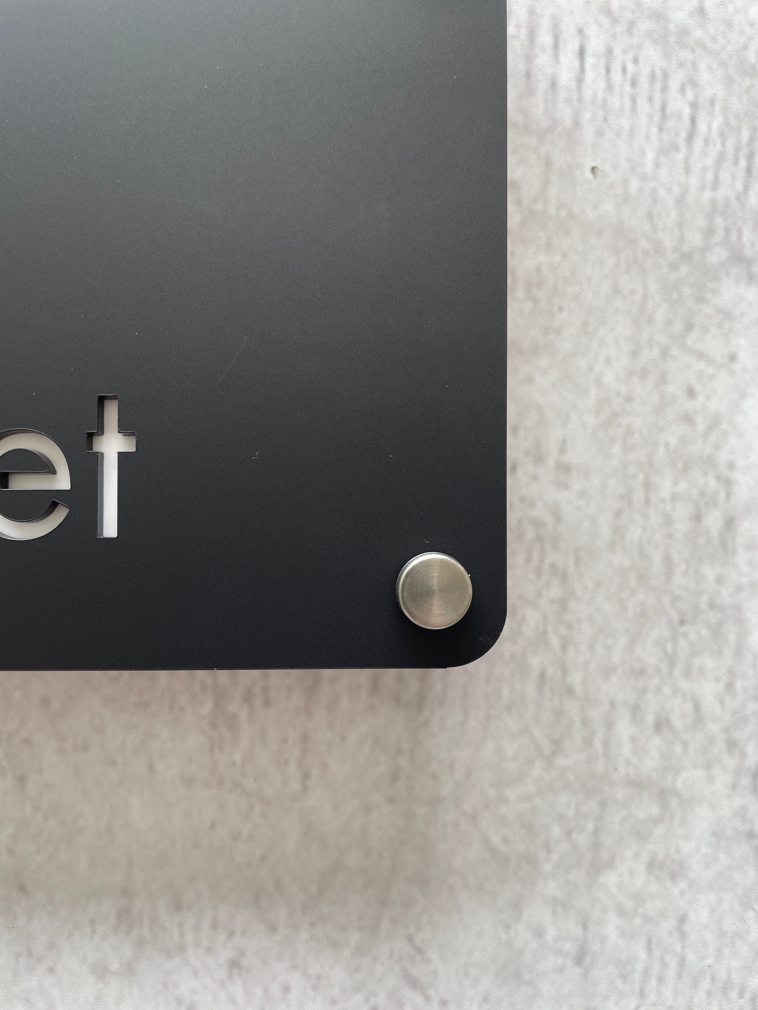 Upgrade to stainless steel standoff screws for a premium finish. Your sign will come with pre-drilled corner holes, along with wall plugs and screws for installation. Drilling required.